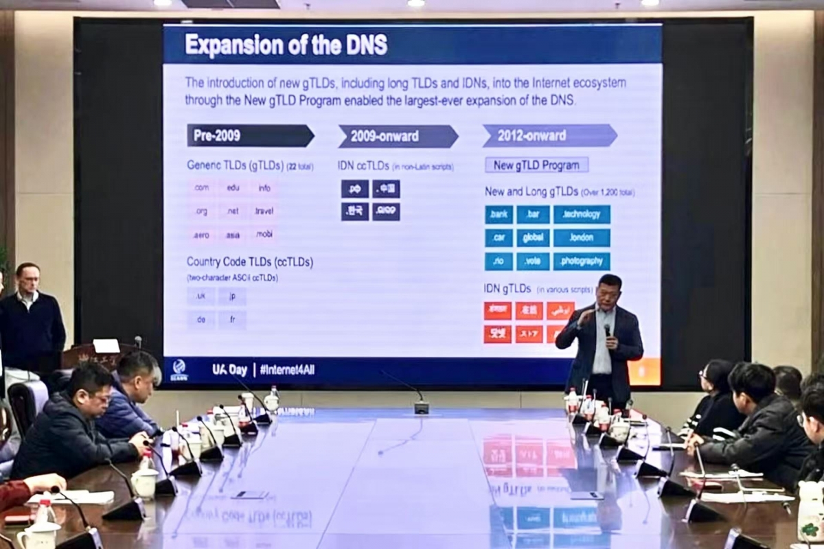 为推动中文域名普遍适用(UA)技术的深度发展与落地应用,进一步凝聚行业合力,中国互联网基础资源工作委员会牵头组织行业专家于3月23日至24日赴浙江杭州开展国际化域名及普遍适用(UA)专题调研。中国互联网协会副秘书长裴玮,ICANN专家张建川、Arnt Gulbrandsen(阿尔特·古布兰森)、工委会秘书长孙钊、点商标域名注册管理机构行政总裁吴养怡及多位国际化域名专家参加调研受邀参加此次调研活动。